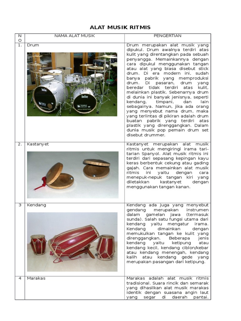 Ada yang termasuk dalam kategori alat musik ritmis modern maupun tradisional, baik dari indonesia maupun dari luar negeri. Baik alat musik ritmis modern ataupun tradisional, sampai saat ini juga masih banyak dipakai dalam berbagai … Mainan alat musik untuk balita atau anak dapat melatih kemampuan pendengaran dan motoriknya.karena itu, kali ini kami akan menjelaskan cara memilih mainan alat musik yang bagus, baik untuk balita maupun. Alat musik marakas telor gagang,motif lukis bahan terbuat dari kayu Alat musik ini berbentuk seperti drum kecil yang pada bagian kulitnya berbentuk besar dan keras.