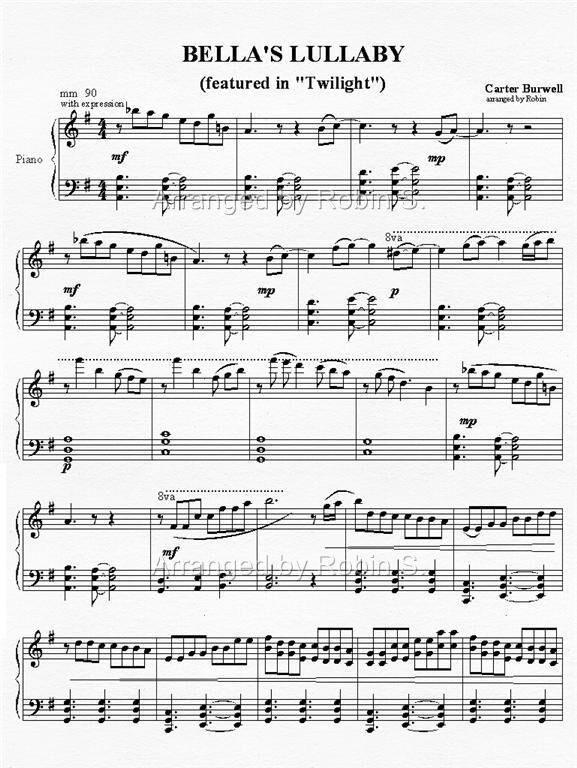 If you are using mobile phone, you could also use menu drawer from browser. Made by the music guy you don't know. Download link for bella s lullaby complete piano sheet from. Music expresses that which cannot be put into words. Bella's lullaby is composed by carter burwell, with the rest of the soundtrack chosen by music supervisor alexandra this music is well known by people and if you like it, you can also download bella's lullaby sheet music to play with everyone piano.