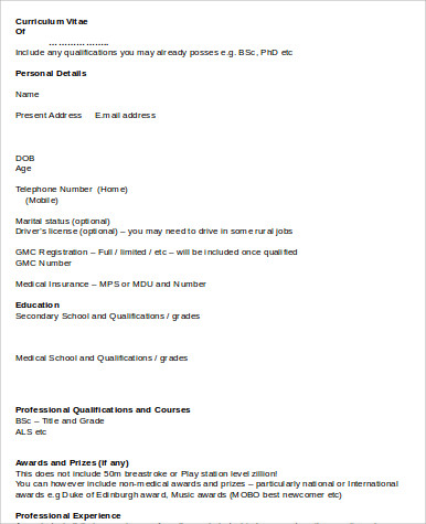 10+ Medical Curriculum Vitae Templates - PDF, DOC | Free & Premium Templates from images.template.net How to write a student resume. Medical curriculum vitae example and writing tips. Medical residents, medical doctors, medical students and more! Resume format pdf vs word. 2014 attended 10th national documents similar to resume format for doctors pdf. For most medical students the point at which you need to think about compiling a curriculum vitae (cv) or resume comes in your final year of medical school. A medical curriculum vitae should include details of your education (undergraduate and graduate), fellowships, licensing, certifications, publications, teaching and professional work experience, awards you have received, and associations. Resume format pick the right resume format for your situation.